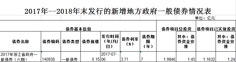 衢州市城市建設投資集團有限公司2017年--2018年末發(fā)行的新增地方政府一般債券情況表