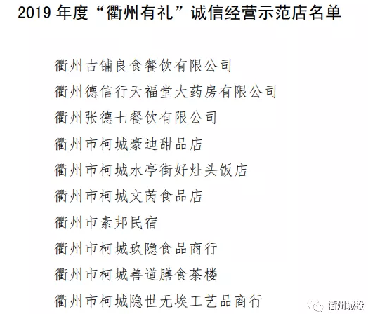 水亭門10家門店獲評2019年度“衢州有禮”誠信經(jīng)營示范店