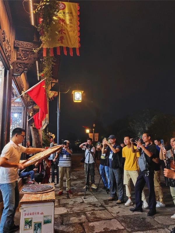 光影秀、燈光秀、古香古色的建筑、麻餅制作表演......在水亭門歷史文化街區(qū),許多擁有衢州特色的元素讓拍友們不時駐足欣賞,在老師的指導下,拍友們拿起相機或手機,將衢州的濃厚的人文底蘊定格在鏡頭里。