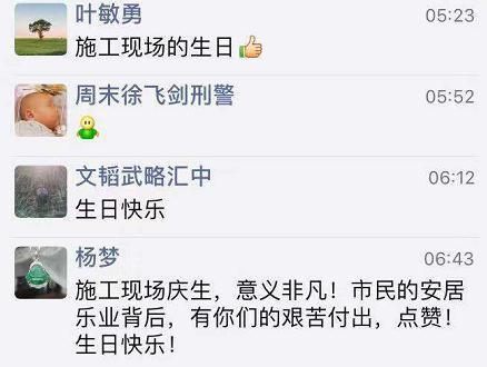 “施工現(xiàn)場慶生,意義非凡!市民安居樂業(yè)的背后,有你們的辛苦付出,點贊!”微信圈網(wǎng)友“楊夢”留言道。