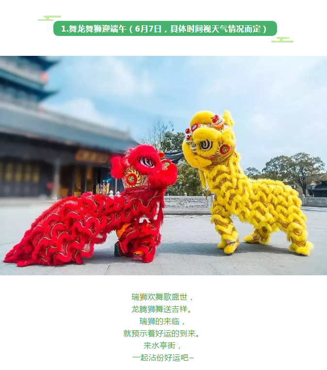 1.舞龍舞獅迎端午(6月7日,具體時(shí)間視況而定)
