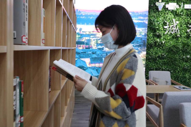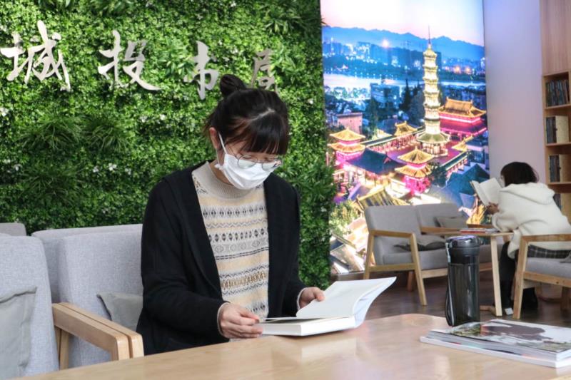 疫情期間,進入書屋看書的員工們都得佩戴好口罩,保持合適的距離進行閱讀。