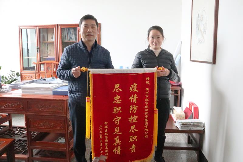 “我代表社區(qū)感謝你們在防疫工作中對我們的支持與幫助!”3月30日上午,美港社區(qū)黨支部書記、居委會負責(zé)人黃瑩送來了一面印有“疫情防控盡職責(zé),盡忠職守見真情”的錦旗,感謝城投集團的“疫”線工作者們在疫情防控期間對社區(qū)防疫工作作出的努力與貢獻。集團副總經(jīng)理王堅威代表集團接收錦旗。