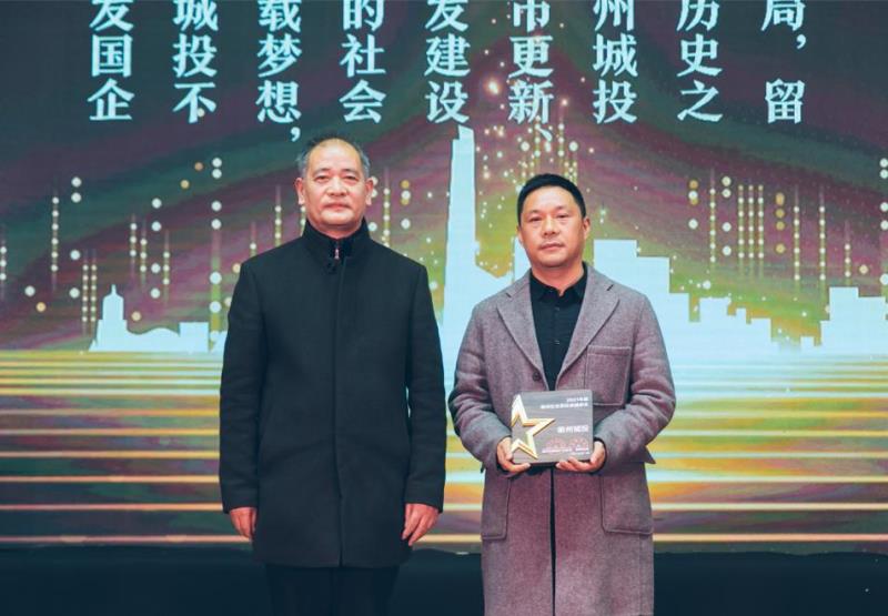 衢州市住建局黨委委員、總工程師吳璀興為衢州城投頒發(fā)“2021年度衢州社會責(zé)任卓越房企”獎牌。